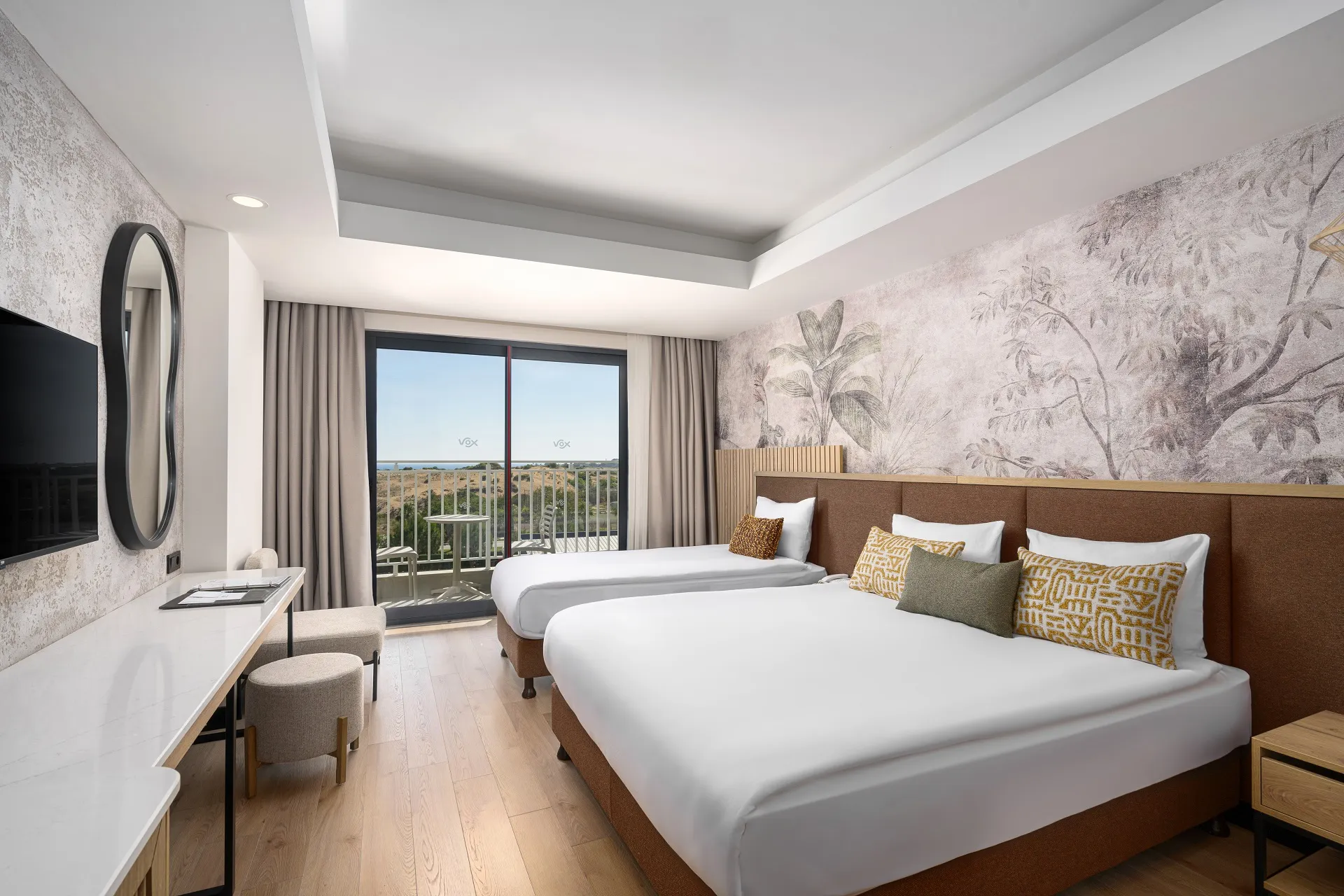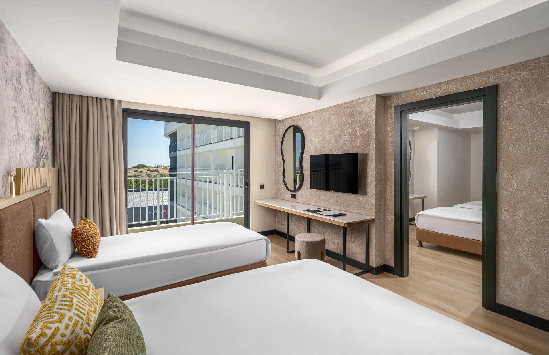 Sports & Leisure To keep your fitness up on holiday, there is a gym for guests to use. In and around the hotel, you can take advantage of various water sports, including bananaboats, river rafting, jet skiing and water aerobics. During your holiday you can also take part in aerobics courses, in Zumba courses and in yoga courses. With beach volleyball, darts and table tennis various other sports offer a lot of variety on holiday. For cyclists there is a bicycle rental. Also boccia is offered as a further leisure activity. Furthermore, various water sports such as kayaking, fishing and windsurfing are offered in the area. A sauna and a wellness shower await you in the spa area. The hotel also offers massages. Let yourself be pampered in the Hamam and find peace and quiet in the relaxation room. Spend some healthy and relaxing hours with Botox treatments, heat therapy as well as hot stone therapy. Infants can be looked after in the hotel`s own baby club. For older children the care takes place in the children`s club. The mini disco also offers age-appropriate entertainment for young hotel guests. In terms of adult entertainment, evening shows and live music are presented. Additional information The 6-storey hotel, newly built in 2024, has a total of 308 rooms. This hotel is gay-friendly. The hotel staff speak English, German, Russian, Polish and Turkish.
