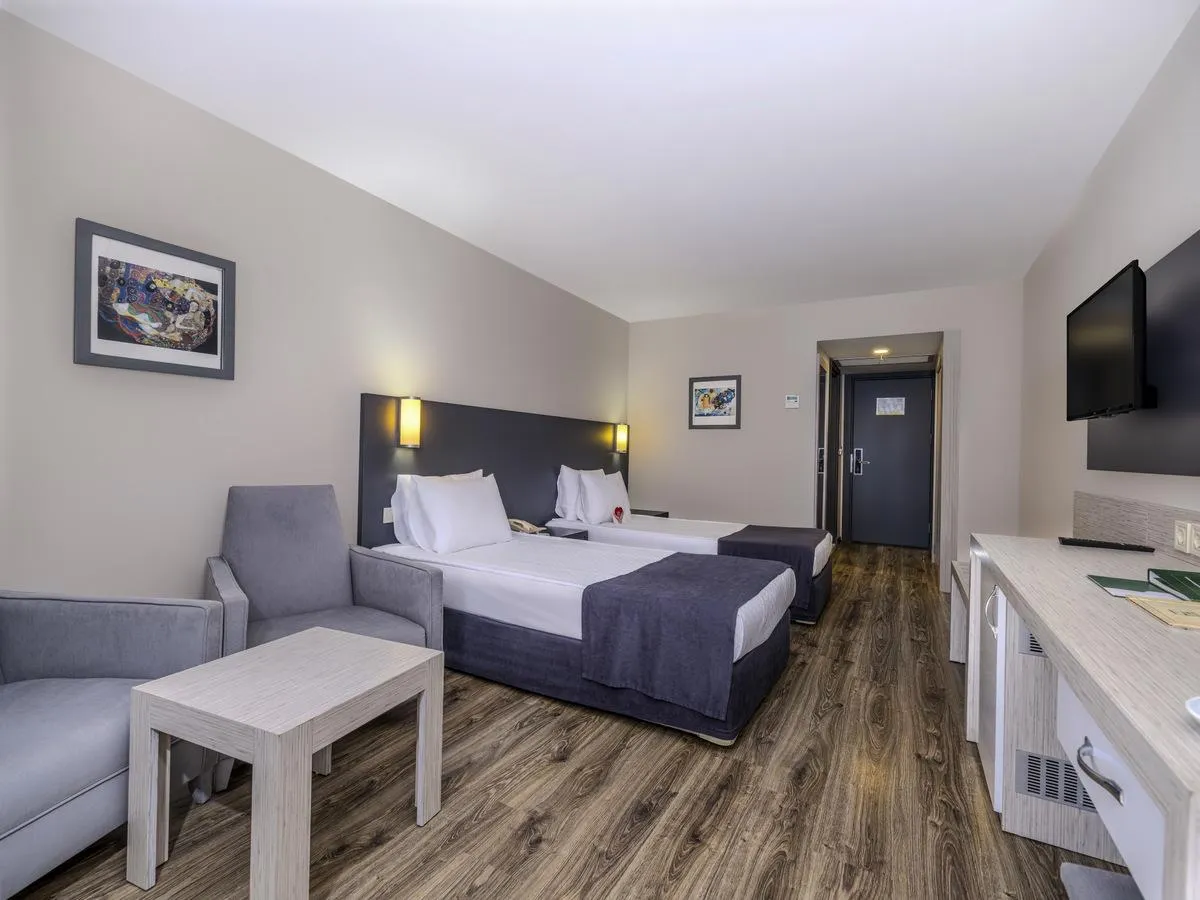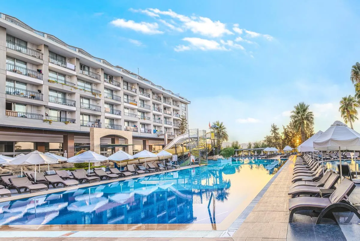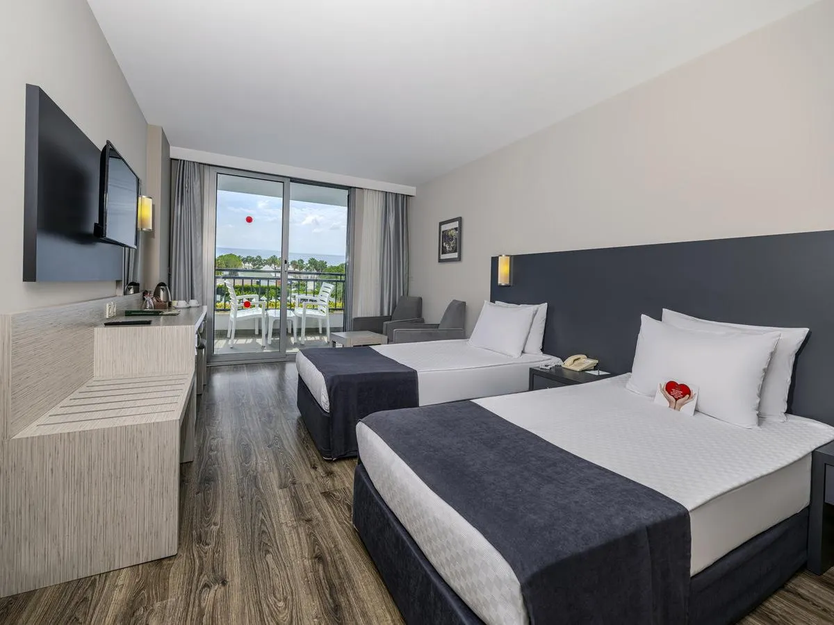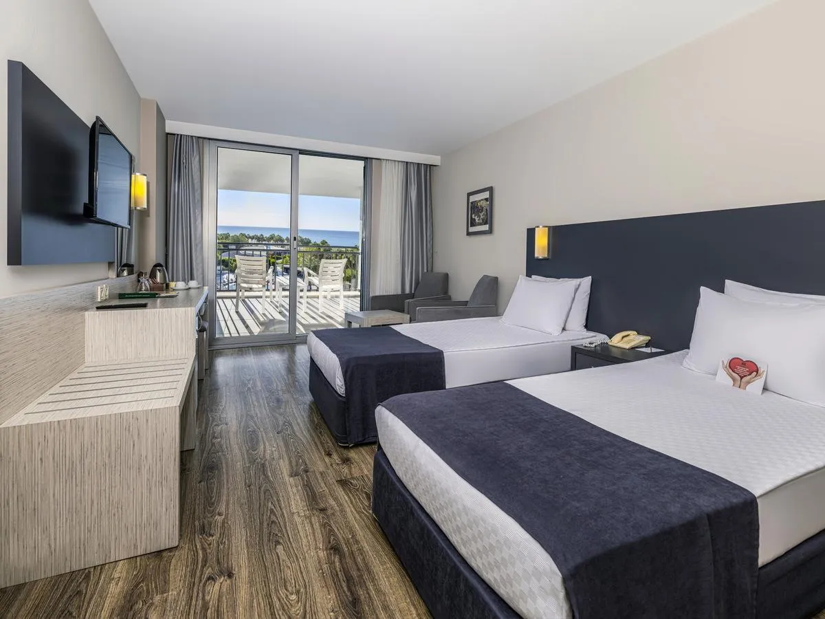 Descriere generală La doar câțiva pași de o plajă privată cu nisip/pietriș se găsește hotelul Washington Resort. Pe plajă sunt disponibile gratuit șezlonguri și umbrele de soare. Orașul Side este la aprox. 12 km (Antalya cca. 80 km). Hotelul dispune de serviciu de rentacar. De asemenea, aveți în apropiere o stație de taxi (cca. 50 m) cea ce vă garantează mobilitatea în vacanța dumneavoastră. Aeroportul (AYT) se află la aprox. 77 km. Un alt aeroport (GZP) este la cca. 90 km. Facilități Resortul dispune de 6 etaje și peste 305 camere repartizate între o clădire principală și de 4 clădiri secundare. Acesta oferă oaspeților săi recepție deschisă 24h (check-in de la 14:00, check out până la 12:00), lobby cu bar, un total de 4 lifturi, aer condiționat, minimarket, alte magazine, discotecă și birou de schimb valutar. Accesul la internet WiFi este disponibil gratuit pentru oaspeții hotelului. Pentru evenimente de afaceri, hotelul oferă o zonă de conferințe cu acces la internet. Serviciul de menaj este gratuit. Room service, spălătorie și serviciul medical sunt disponibile la un cost suplimentar. Piscină În grădinile acestui hotelul există o piscină precum și o piscină pentru copii și un tobogan de apă. La piscină sunt disponibile gratuit șezlonguri și umbrele de soare. La barul de la piscină sunt disponibile băuturi răcoritoare (deschis între orele 10:00 - 00:00). Catering Mic dejun (între orele 07:00 - 10:00) bufet suedez. All Inclusive Plus: micul dejun, prânzul și cina. Micul dejun, prânzul și cina pot fi servite numai în anumite restaurante. În plus aperitive (12:00 - 16:00) și gustări la miezul nopții (23:30 - 02:00). Mic dejun târziu, apă, băuturi răcoritoare, bere, vin, băuturi alcoolice naționale și internaționale, cafea și ceai și prăjituri și produse de patiserie. Internet gratuit, utilizarea gratuită a seifului (în baza unei garanții), minibar gratuit (limitat) și service 24h. Sport/Leisure Este disponibil: Aerobic, fitness, biliard (contra cost), tenis de masă (gratuit), darts (gratuit), volei pe plajă, tenis (gratuit) și baschet. Pe plajă puteți practica sporturi nautice precum jet ski (unele de către furnizori locali). Oferte de wellness: Saună, jacuzzi și hamam gratuite. Zonă de spa și masaje contra cost. Divertisment pentru adulți: spectacole de seară și muzică live. Pentru distracția celor mici există un loc de joacă. Îngrijirea copiilor: mini club pentru copii (de la 4 - 12 ani) și babysitting (contra cost). Sală de jocuri. Informații suplimentare Pentru anumite facilități sau activități se pot aplica taxe suplimentare. Unele servicii depind de anotimp și de condițiile climatice locale. Limbi de serviciu: engleză, germană, rusă și turcă. Carduri de credit: Visa și Euro/MasterCard. 2 Zimmer mit Verbindungstür Standard Familienzimmer: Cameră cu pat pentru bebeluși (gratuit), parchet laminat, încălzire reglabilă individual, ceainic (gratuit), minibar (posibil contra cost), balcon, acces la internet (contra cost), seif (gratuit) și TV prin satelit precum și aer condiționat reglabil individual. Baie cu duș. Familien Suite (SwimUp-Pool Terrasse): Dotate cu pat pentru bebeluși (gratuit), parchet laminat, încălzire reglabilă individual, ceainic (gratuit), minibar (posibil contra cost), balcon, acces la internet (contra cost), seif (gratuit) și TV prin satelit precum și aer condiționat reglabil individual. Baie cu duș. Standard Familien Suite (SwimUp-Pool Terrasse): Dotate cu pat pentru bebeluși (gratuit), parchet laminat, încălzire reglabilă individual, ceainic (gratuit), minibar (posibil contra cost), balcon, acces la internet (contra cost), seif (gratuit) și TV prin satelit precum și aer condiționat reglabil individual. Baie cu duș. Standard Zimmer (Seitlicher Meerblick): Cameră cu pat pentru bebeluși (gratuit), parchet laminat, încălzire reglabilă individual, ceainic (gratuit), minibar (posibil contra cost), balcon, acces la internet (contra cost), seif (gratuit) și TV prin satelit precum și aer condiționat reglabil individual. Baie cu duș. Standard Zimmer (Meerblick): Cameră cu pat pentru bebeluși (gratuit), parchet laminat, încălzire reglabilă individual, ceainic (gratuit), minibar (posibil contra cost), balcon, acces la internet (contra cost), seif (gratuit) și TV prin satelit precum și aer condiționat reglabil individual. Baie cu duș. Doppel Standard Zimmer: Cameră cu pat pentru bebeluși (gratuit), parchet laminat, încălzire reglabilă individual, ceainic (gratuit), minibar (posibil contra cost), balcon, acces la internet (contra cost), seif (gratuit) și TV prin satelit precum și aer condiționat reglabil individual. Baie cu duș. Einzelbelegung Standard Zimmer: Dotate cu pat pentru bebeluși (gratuit), parchet laminat, încălzire reglabilă individual, ceainic (gratuit), minibar (posibil contra cost), balcon, acces la internet (contra cost), seif (gratuit) și TV prin satelit precum și aer condiționat reglabil individual. Baie cu duș. Einzelbelegung Standard Zimmer (Seitlicher Meerblick): Dotate cu pat pentru bebeluși (gratuit), parchet laminat, încălzire reglabilă individual, ceainic (gratuit), minibar (posibil contra cost), balcon, acces la internet (contra cost), seif (gratuit) și TV prin satelit precum și aer condiționat reglabil individual. Baie cu duș. Einzelbelegung Standard Zimmer (Meerblick): Cameră cu pat pentru bebeluși (gratuit), parchet laminat, încălzire reglabilă individual, ceainic (gratuit), minibar (posibil contra cost), balcon, acces la internet (contra cost), seif (gratuit) și TV prin satelit precum și aer condiționat reglabil individual. Baie cu duș.